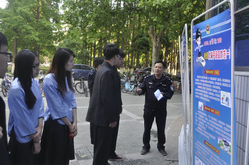 在为期一周的宣传活动中,学生处、保卫处等各部门高度重视,精心组织,全体保卫人员、各学院党团书记、班主任及学生干部齐心协力,认真、扎实开展宣传教育活动。校园保卫人员90余人、治安志愿者400余人也参与到此次宣传活动中来。在大家的共同努力下,我们共在两个校区设立活动宣传点4个,制作活动展板22块,横幅12条,开设辅导讲座3场。学生处通过网上平台发送预防诈骗短信多条至各学院党团书记、班主任及学生干部手机上,宣传预防电信网络诈骗的重要性。各二级学院也在网上就活动开展情况积极开展宣传报道工作。同时,我们还积极和公安机关协同配合,共同构建防范电信诈骗的壁垒,活动期间邀请了闸北派出所和果林派出所的民警亲临两个校区与师生现场互动,以案说法,帮助学生进一步了解电信诈骗的形式、手段、特点和危害,掌握必要的防范技能,切实筑牢思想防线。