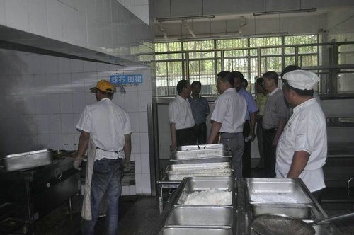 图为检查组深入食堂操作间进行安全检查。 记者景鹏摄