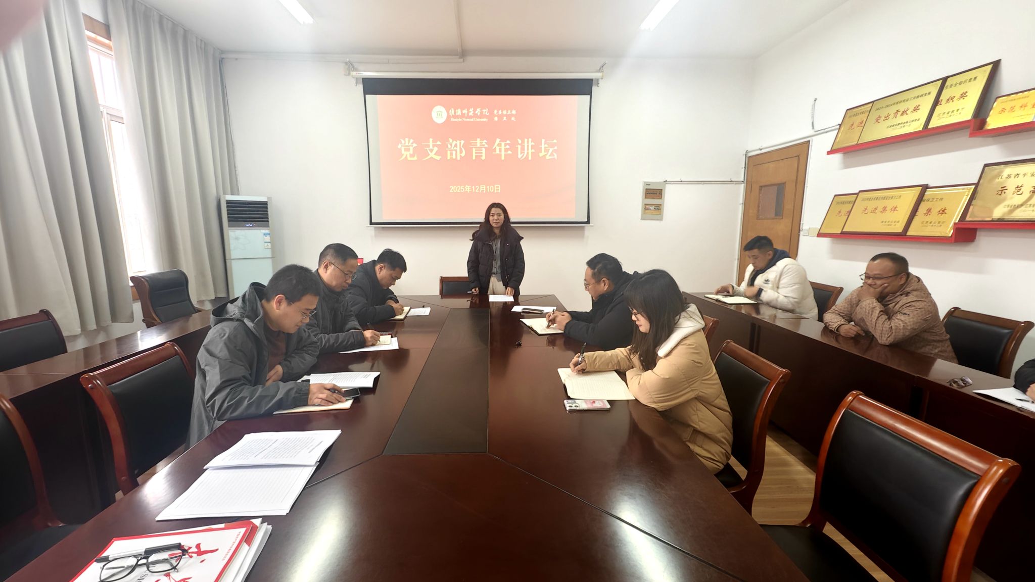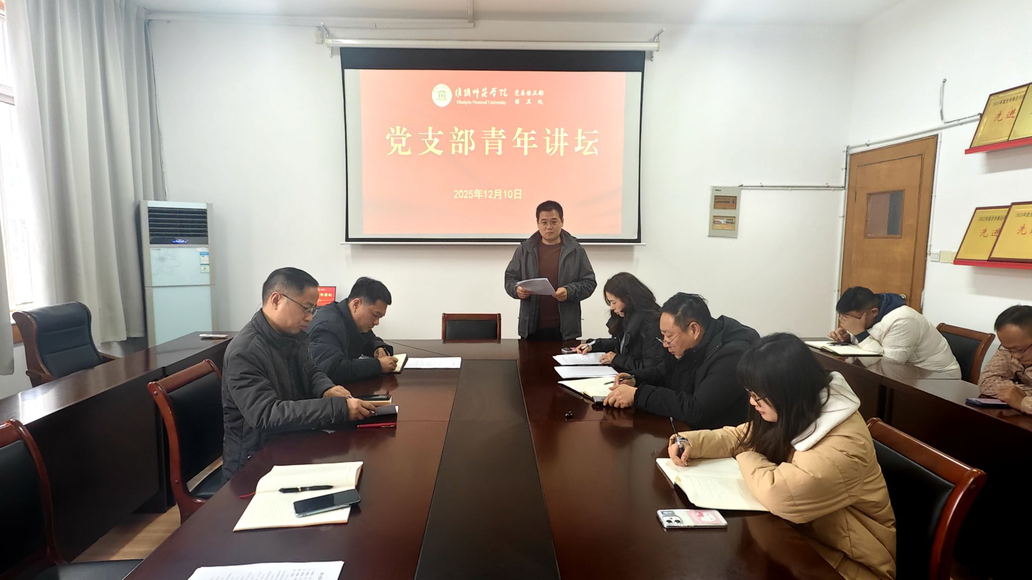 12月10日,党委保卫部、保卫处党支部召开党员会议,学习习近平总书记重要讲话精神和在《求是》杂志上发表的重要文章,开展青年讲坛活动,党支部书记景鹏主持会议。